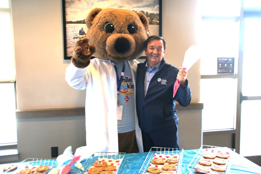 Smiles are back across Markham, Ballantrae, and Stouffville as the annual Tim Hortons Smile Cookie campaign returns from April 27 to May 3 in support of Oak Valley Health’s Markham Stouffville Hospital (MSH). To kick off the campaign, Dr. Bear stopped by a local Tim Hortons, where he was greeting customers, taking orders, working the drive-thru, and decorating Smile Cookies.