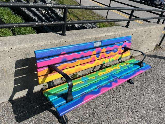 Sophia Yeh-Chau and Samuel Peter created a set of benches in the Main Street Gazebo that “invites moments of pondering, conversation, reflection and rest,” they say. “We want the bench to reflect the unity of new ideas and wisdom exchanged. After all, the richness resides where there is an open mind and open heart. Like branches in a forest or yarn of a quilt, the vibrant hues are intertwined making a strong core.” Stouffville’s logo inspired the colour selection.
