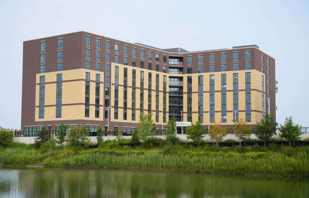 This eight-story new facility is designed with a focus on providing resident-centred care, which takes care of the diverse needs of residents. The state-of-the-art facility offers enhanced Infection Prevention and Control (IPAC) measures: individual heating, ventilation and air conditioning (HVAC) units are installed in every room. Basic rooms are upgraded with an en-suite washroom and maintain the basic room rate. These upgraded rooms offer increased safety and privacy for all residents.